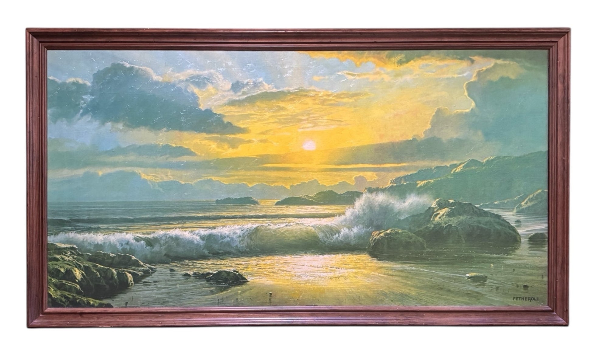 Vintage Sunset Splendor Coastal Seascape Print by Fetherolf in Wood Frame